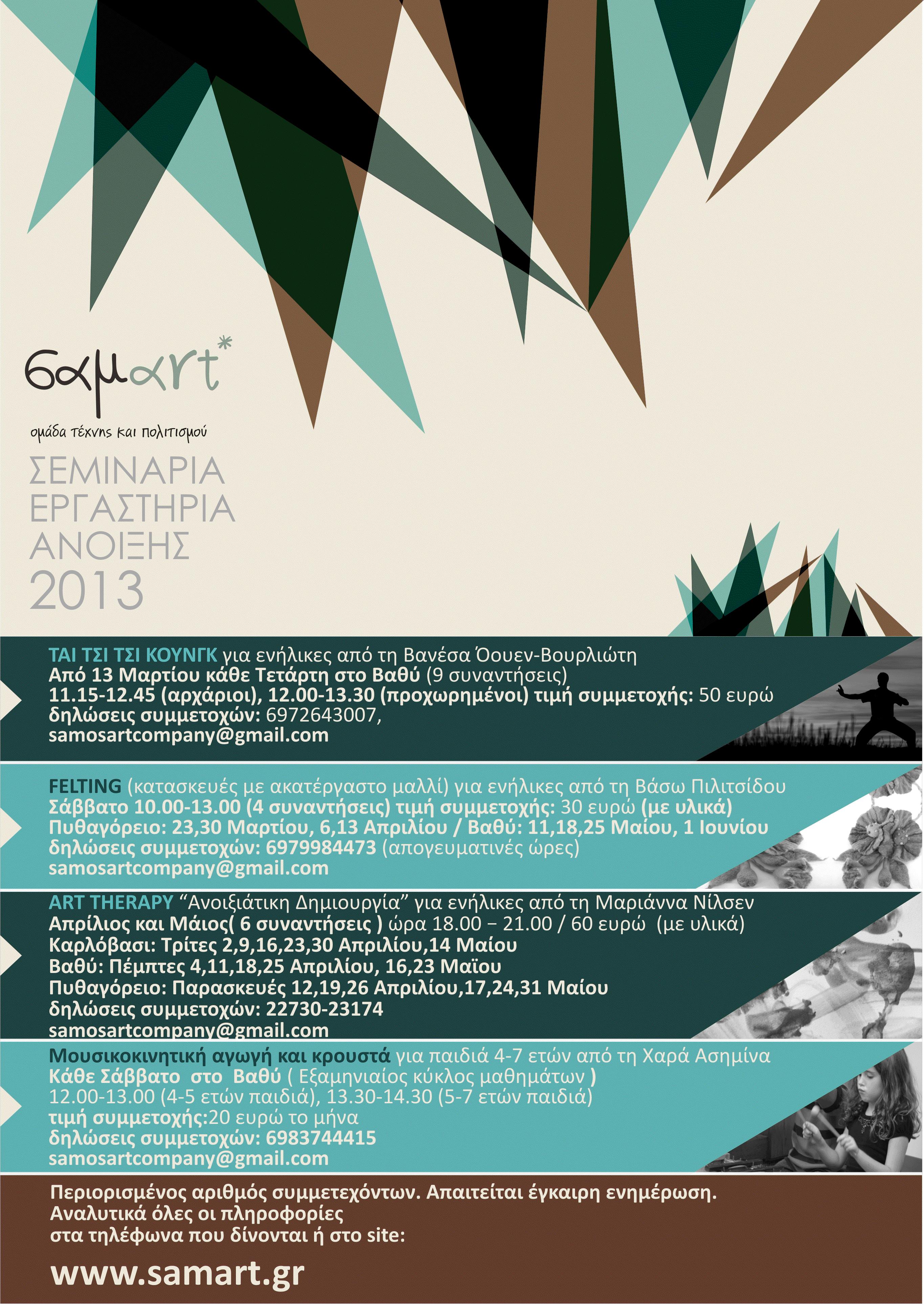 Η σαμart οργανώνει για τους μήνες από Μάρτιο ως και Ιούνιο τα παρακάτω σεμινάρια-εργαστήρια: