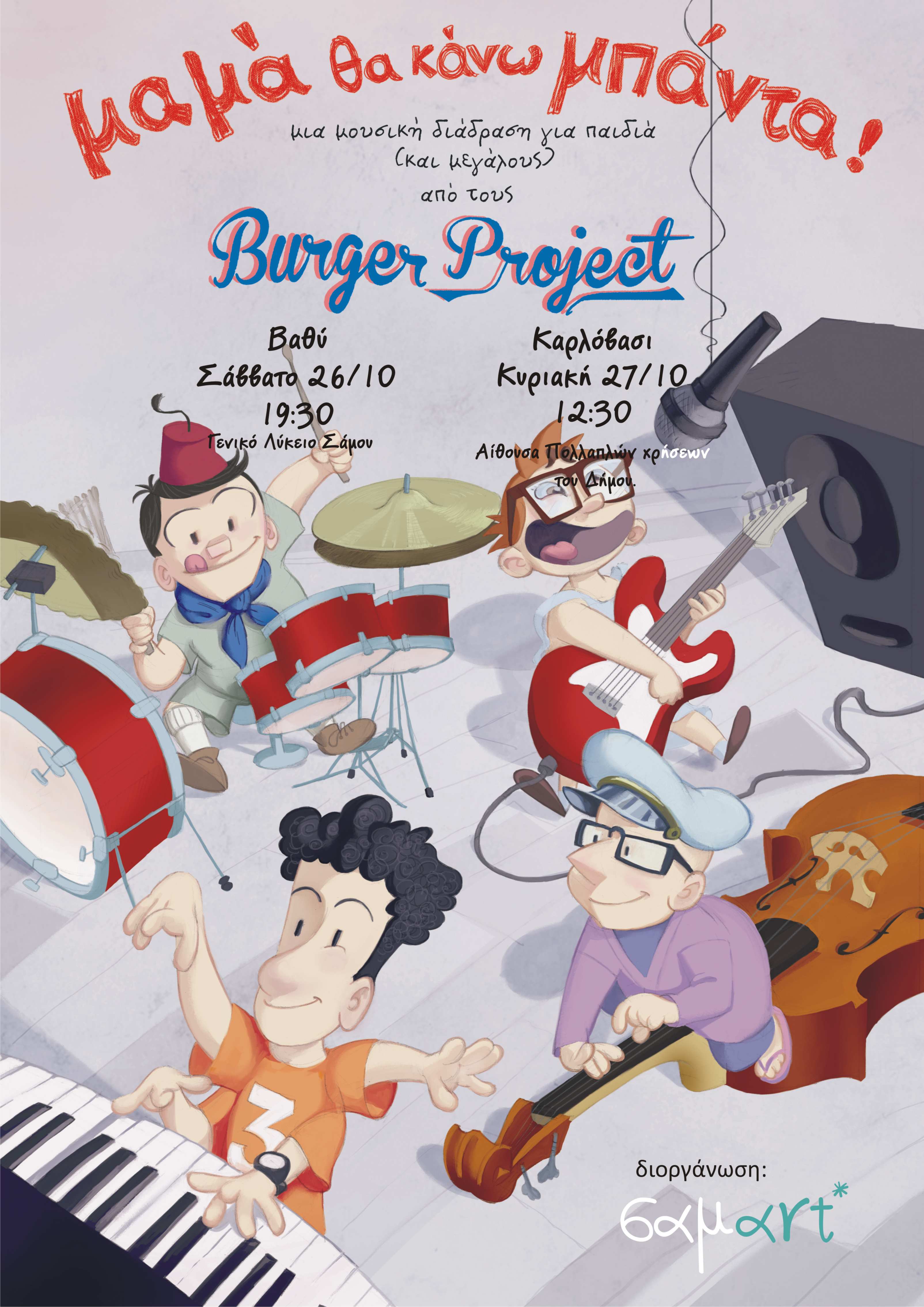 19.30 Μουσικοθεατρική παράσταση ‘Μαμά θα κάνω μπάντα’ από τους Burger Project, Γενικό Λύκειο Σάμου