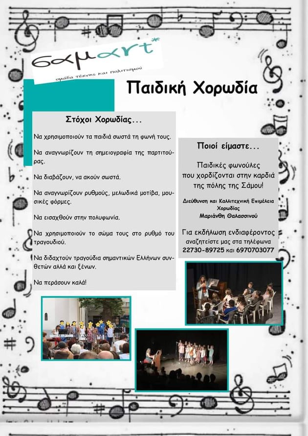 Περισσότερες πληροφορίες στο τηλέφωνο 22730-89725 (σε ώρες λειτουργίας της Γραμματείας) ή στο χώρο της Γραμματείας τις παραπάνω ώρες και ημέρες. E-mail: samosartcompany@gmail.com