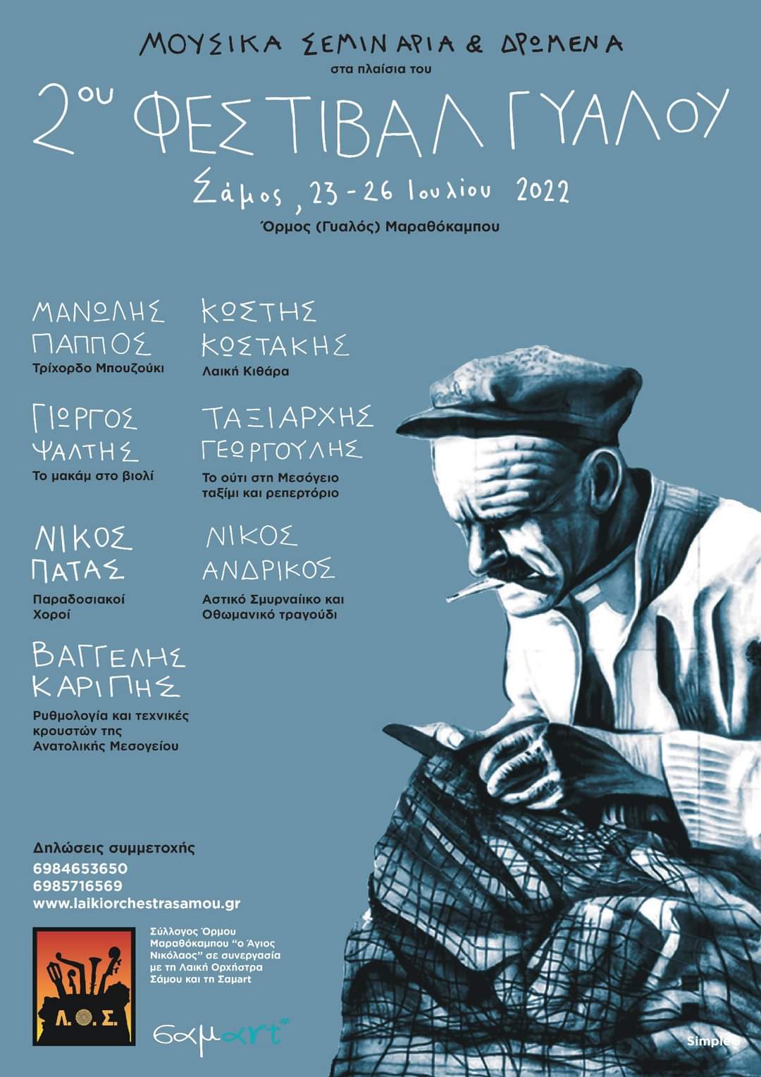 Η Ομάδα Τέχνης & Πολιτισμού σαμart στηρίζει τη διοργάνωση μουσικών σεμιναρίων παραδοσιακής και λαϊκής μουσικής του 2ου Φεστιβάλ Γυαλού, το οποίο θα πραγματοποιηθεί 23 με 26 Ιουλίου 2022 στον Όρμο Μαραθοκάμπου.
